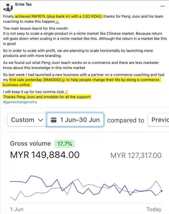 ปัจจุบัน Peng Joon ได้สร้างความสำเร็จอีกระดับด้วยการช่วยเหลือเจ้าของธุรกิจมากกว่า 50,000 ชีวิตทั่วโลกจากหลากหลายอุตสาหกรรมในการสร้างธุรกิจออนไลน์ให้ประสบความสำเร็จด้วยวิธีการที่เขาคิดค้นขึ้น