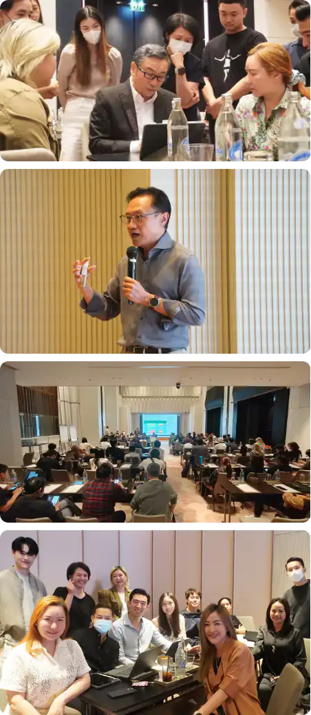นำความรู้ที่คุณได้เรียนรู้มาวางแผนระดมสมองกับเพื่อนร่วมรุ่นจากหลากหลายอุตสาหกรรม เพื่อต่อยอดความสัมพันธ์และความรู้ในมุมมองที่แตกต่าง สร้างประสบการณ์จริงตั้งแต่ขั้นตอนแรกถึงขั้นตอนสุดท้าย พร้อมได้รับการดูแลใกล้ชิดจากทีมคณาจารย์ตลอด 3 สัปดาห์