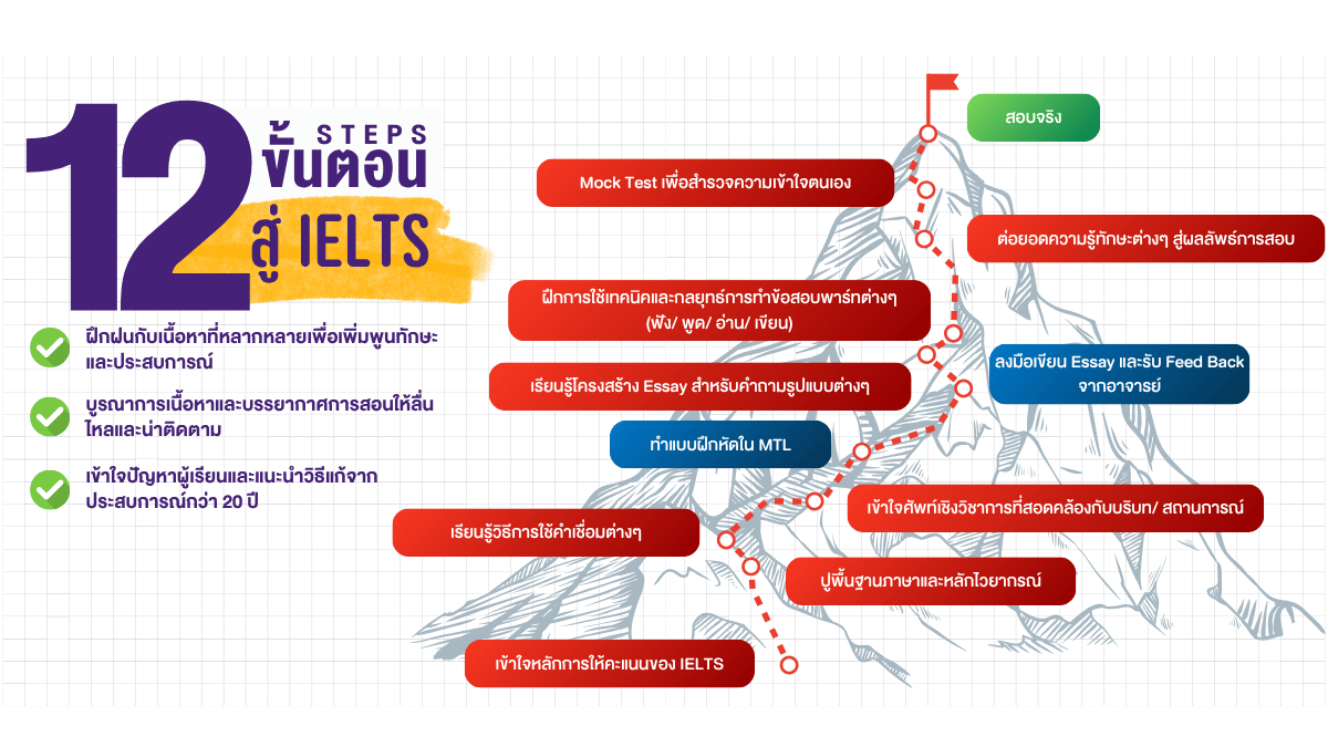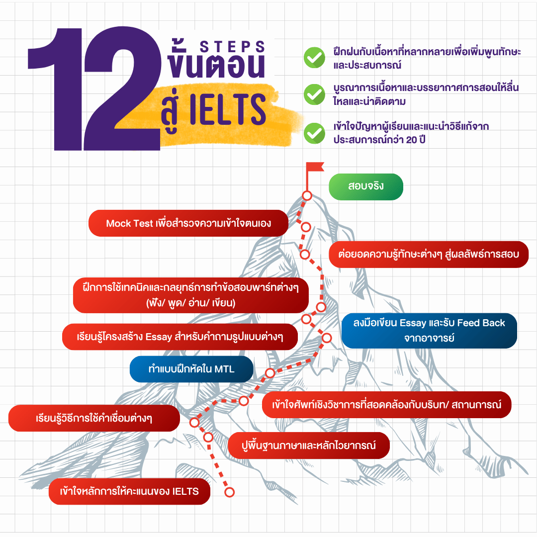 หลักสูตรของเราเป็นหลักสูตรเตรียมความพร้อมในการสอบ IELTS (International English Language Testing System) ซึ่งเป็นการสอบวัดระดับความสามารถการใช้ภาษา โดยผลสอบสามารถนำไปใช้ในการ..