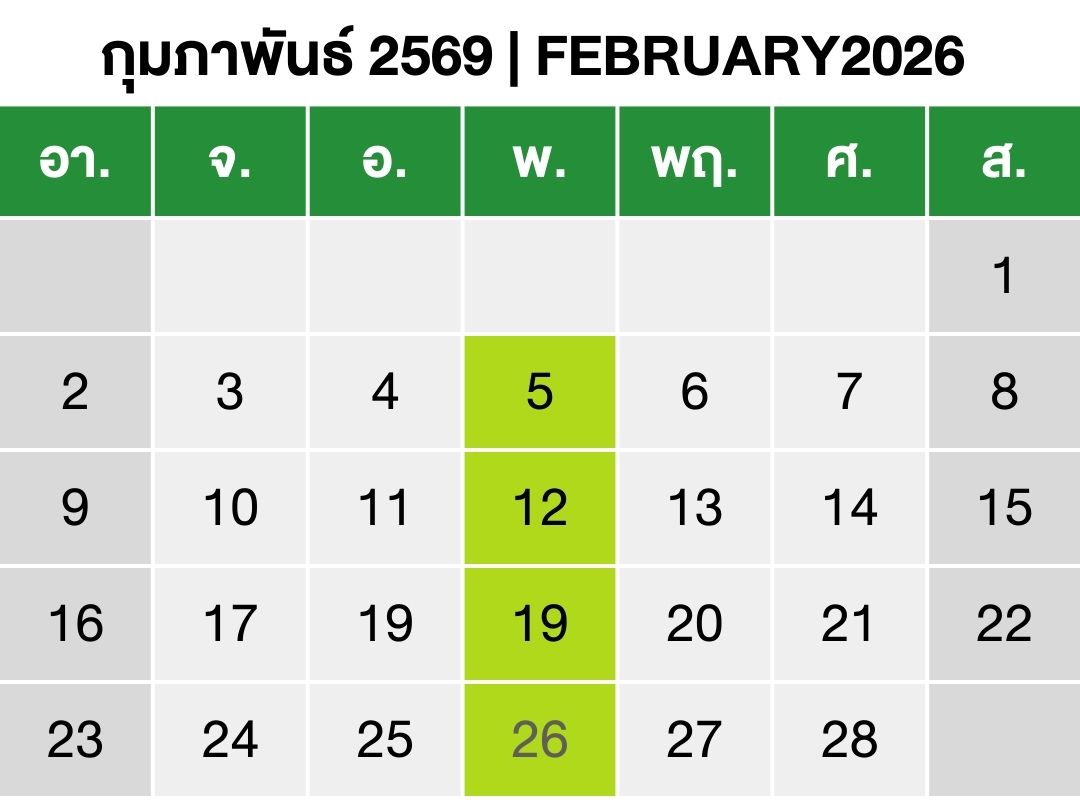 วันที่ 5, 12, 19, 26 กุมภาพันธ์ 2569