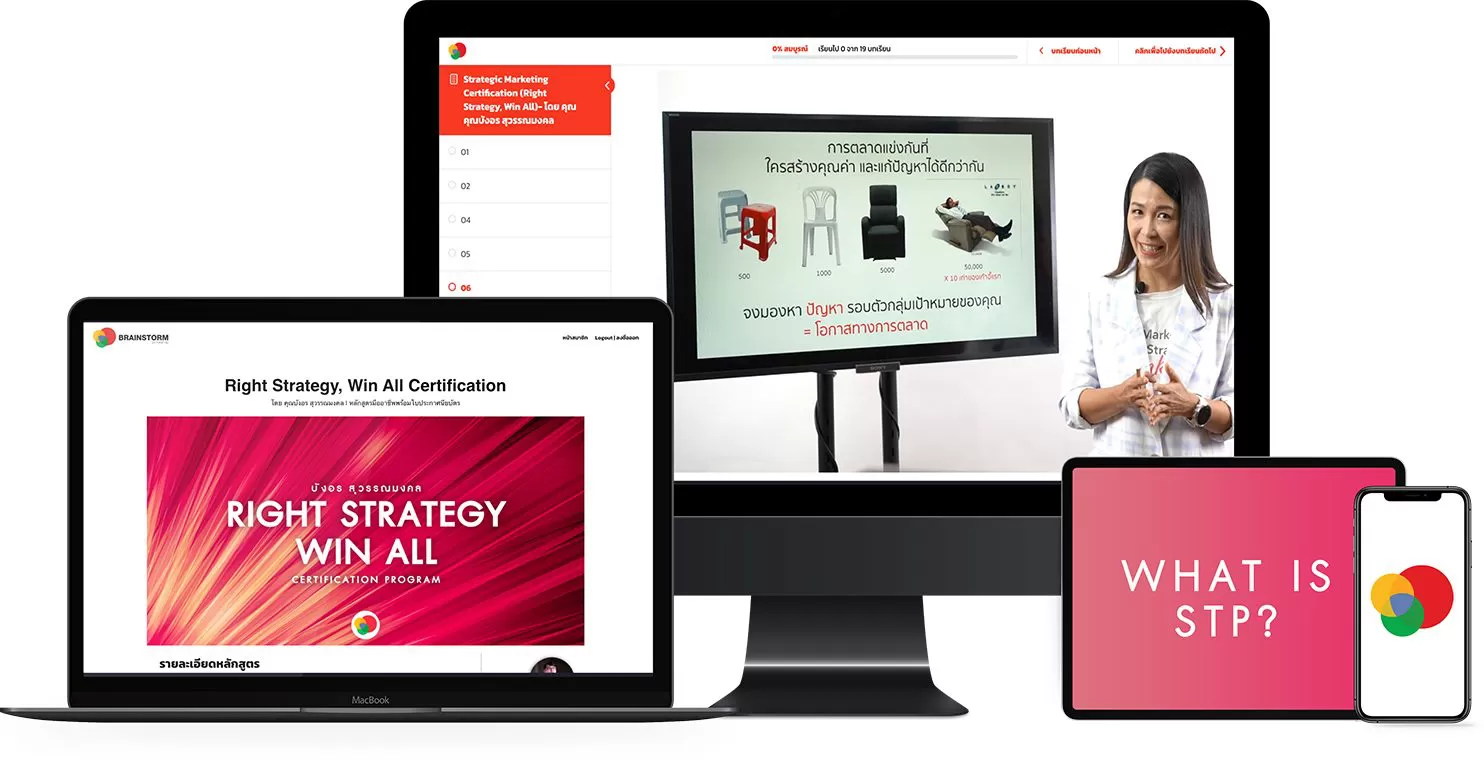 เพราะในหลักสูตร Right Strategy, Win All จะพาคุณไปเรียนรู้กระบวนการง่ายๆ ในการวางกลยุทธ์ กลวิธี และเครื่องมือในการไปให้ถึงทุกเป้าหมายทางการตลาดของคุณ